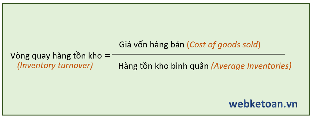 Vòng quay hàng tồn kho (Inventory Turnover) là gì? Ý nghĩa và cách tính Vòng quay hàng tồn kho là gì? Vòng quay hàng tồn kho tiếng anh là Inventory Turnover là một trong những chỉ số tài chính quan trọng dùng để đo lường khả năng quản trị hàng tồn kho trong toàn bộ hoạt động của một doanh nghiệp. Khi muốn phân tích hiệu quả hoạt động kinh doanh, người ta thường tính toán hệ số vòng quay hàng tồn kho để so sánh tỷ lệ giữa hàng hóa đã bán và hàng hóa được nhập vào kho trong cùng một khoảng thời gian nhất định. Từ đó nhà phân tích biết được những mặt hàng nào đang được nhập xuất không hiệu quả để có những cách thức điều chỉnh bán hàng sao cho hiệu quả hơn. Ý nghĩa vòng quay hàng tồn kho Hệ số vòng quay hàng tồn có vai trò quan trọng khi xác định khả năng của doanh nghiệp trong báo cáo tài chính: 1. Xác định khả năng quản trị hàng tồn kho của công ty, doanh nghiệp bằng việc so sánh số liệu qua các năm. 2. Hệ số vòng quay hàng tồn kho lớn thì cho thấy tốc độ quay vòng của hàng hóa trong kho là nhanh. 3. Hệ số vòng quay hàng tồn kho thấp thì cho thấy tốc độ quay vòng của hàng hóa trong kho chậm, thấp hoặc tồn kho lớn. 4. Thể hiện doanh nghiệp bán hàng nhanh, sản lượng hàng hóa, độ ứ đọng hàng hóa, tốc độ tiêu thụ. 5. Khả năng rủi ro của công ty, doanh nghiệp qua từng năm. Tuy nhiên số hàng tồn kho còn tùy thuộc nhiều vào ngành hàng, doanh thu, dòng tiền... vì vậy không phải cứ mức tồn kho thấp là tốt, mức tồn kho cao là xấu. Cách tính hệ số vòng quay hàng tồn kho: Cách tính vòng quay hàng tồn kho thực hiện bằng cách lấy giá vốn hàng bán trong một kỳ nhất định chia cho bình quân giá trị hàng tồn kho trong cùng kỳ. Ở đây, bình quân giá trị hàng tồn kho sẽ bằng trung bình cộng của giá trị đầu kỳ và giá trị cuối kỳ. Ví dụ minh họa: Ta có báo cáo kết quả hoạt động kinh doanh và cân đối kế toán công ty K như sau: T